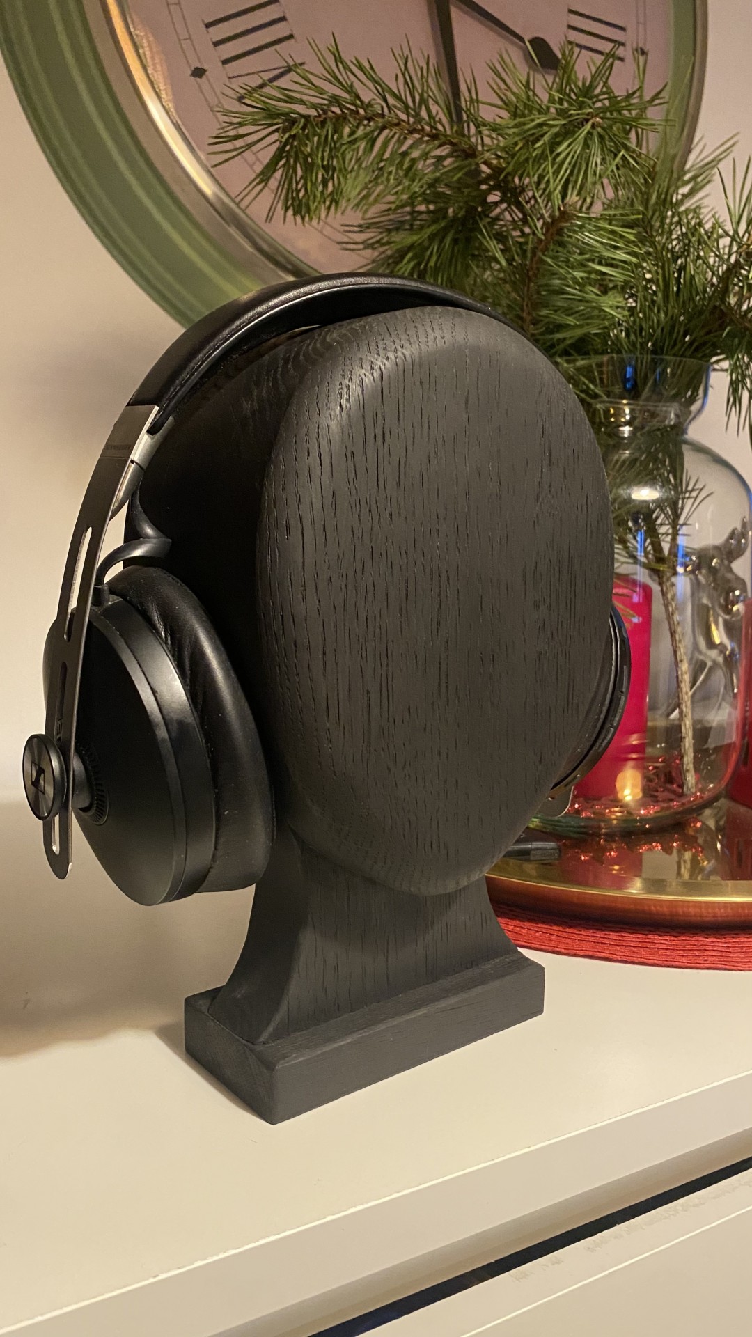 Drewniany stojak na słuchawki wokółuszne. Wykonany z tego samego drewna i w tym samym kolorze co Twoja szafka RTV.